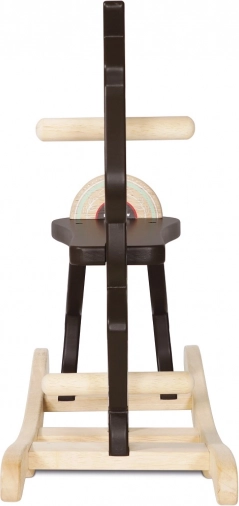 - La sécurité avant tout : base en bois solide, balancement stable, poignée lisse et repose-pieds.
