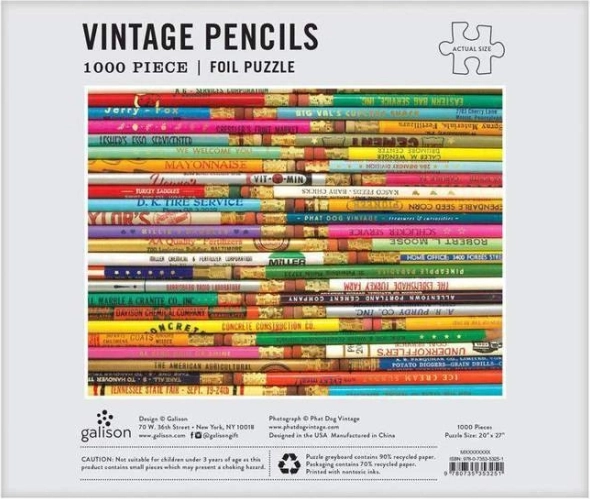 Profitez d’un moment apaisant avec ce puzzle au motif saisissant de crayons vintage, collectionnés en voyage par le studio PHAT DOG VINTAGE. Chaque détail prend vie grâce à une impression soignée, et des parties choisies sont mises en valeur par des accents brillants en feuille d’or, conférant une touche luxueuse à la composition.