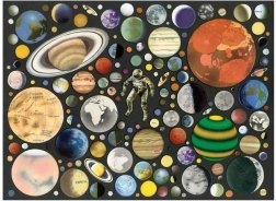 Le puzzle représente l’univers avec des planètes multicolores et un astronaute, offrant une valeur à la fois éducative et décorative.