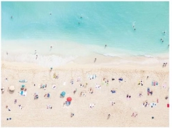 La conception recto-verso offre deux fois plus de plaisir. Une face capture une plage animée avec des visiteurs bronzant, l’autre révèle un océan turquoise et le monde sous-marin.