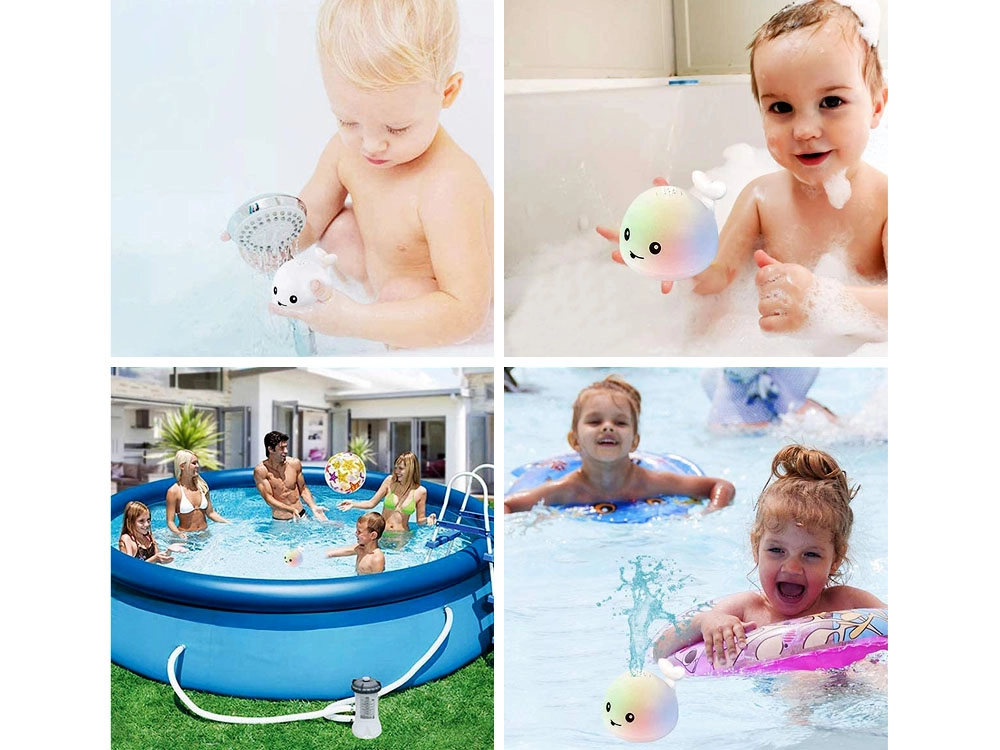 Une fois plongée dans l’eau, la baleine s’active toute seule et crée une douce petite fontaine qui divertira les enfants pendant de longues minutes.