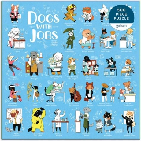 Puzzle familial Galison Chiens au travail, 500 pièces. Qualité premium, pièces parfaitement ajustées, encres non toxiques et papier recyclé. Dimensions 50,8 × 50,8 cm.