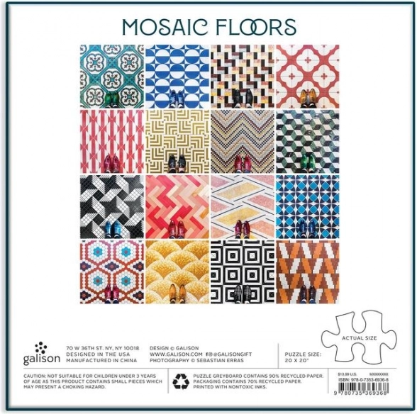 Découvrez un défi élégant avec le puzzle GALISON présentant un collage de 16 motifs décoratifs de sols. Il contient 500 pièces, est fabriqué à partir de papier recyclé et imprimé avec des encres non toxiques. Grâce à sa qualité premium et à sa coupe précise, les pièces s’emboîtent parfaitement et favorisent à la fois la pensée logique et la motricité fine.