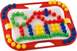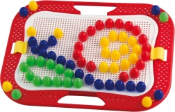 Ce set de mosaïque créatif offre aux enfants dès 3 ans d’innombrables possibilités pour composer des images et des motifs. De grandes chevilles, faciles à tenir, avec une tête bombée lisse, s’insèrent dans les trous d’une plaque perforée robuste montée dans un cadre solide avec poignées. Le jeu stimule l’imagination, développe la coordination œil-main et renforce la concentration.