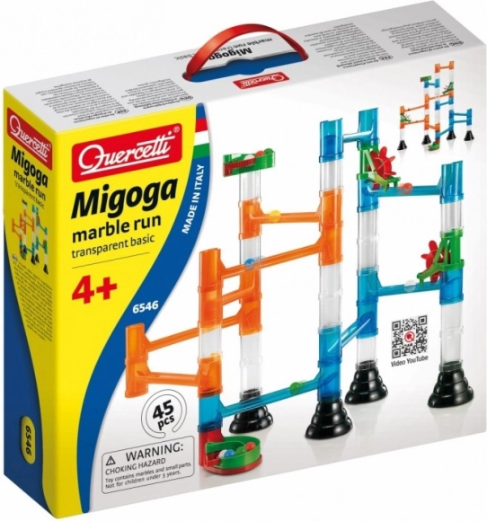 Le circuit à billes Migoga de Quercetti aide à développer la motricité et la créativité des enfants. Ils peuvent concevoir leurs propres circuits et observer le parcours des billes à travers leurs constructions.