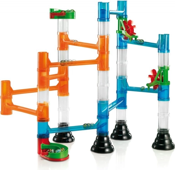 Le jeu de construction encourage la pensée logique des enfants et leur capacité à planifier chaque structure dans les moindres détails afin que les billes parcourent le circuit sans encombre.