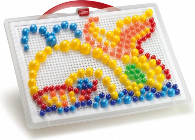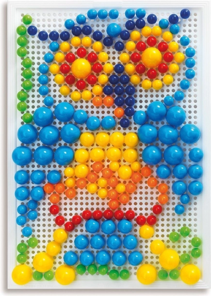 Créez d'incroyables mosaïques et motifs avec les chevilles colorées placées sur une solide plaque blanche.