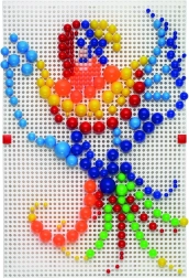 Contient 300 chevilles en sept nuances de couleurs, permettant de créer des mosaïques attrayantes.