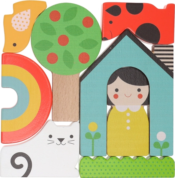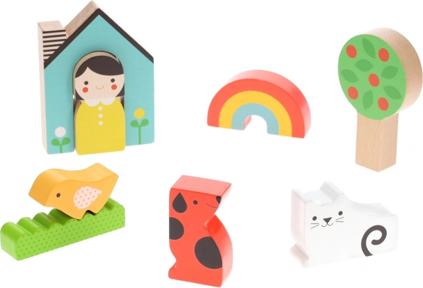 Cet ensemble coloré permet aux enfants de créer des scènes domestiques ou de construire comme un puzzle. Les pièces sont conçues pour bien tenir dans les mains des enfants et sont fabriquées à partir de bois 100% FSC®, garantissant un respect de la nature.