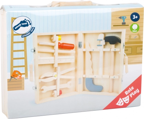 Pratique valisette en bois avec un ensemble de 8 outils pour les petits bricoleurs dès 3 ans. Finition en bois de haute qualité, rangement sécurisé des outils et développement de la motricité fine font de cet ensemble un choix idéal pour le jeu créatif.