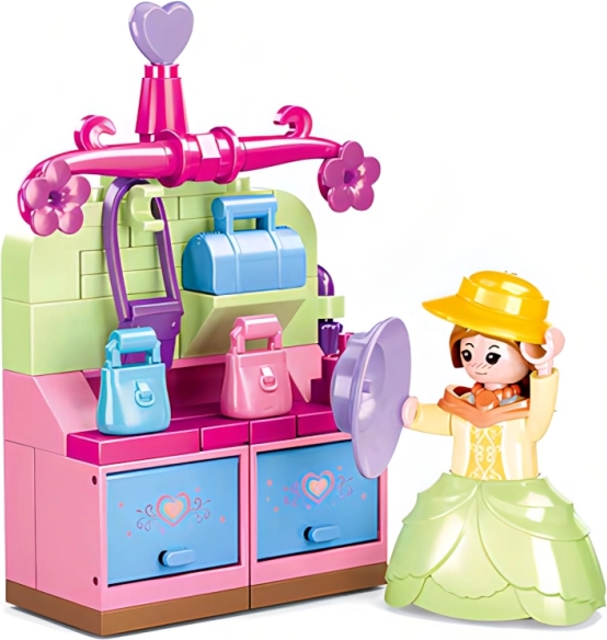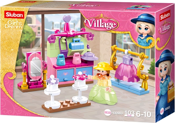 Le kit Sluban Boutique d’époque avec vêtements offre un excellent divertissement pour les enfants grâce à sa simplicité et à la possibilité de créer leurs propres scénarios de jeu. L’ensemble comprend 103 pièces et une figurine, permettant de réaliser diverses scènes de mode en boutique.