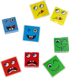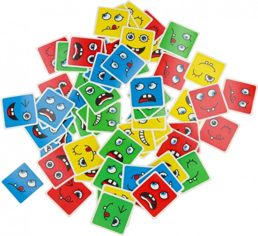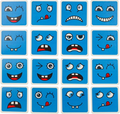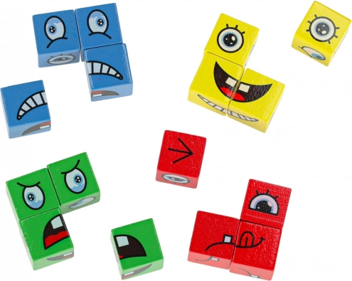 Un jeu logique amusant pour enfants et adultes qui développe la reconnaissance des émotions, la pensée logique et la motricité fine. Faites pivoter les cubes en bois colorés et, selon les cartes, composez l’expression de visage correcte – gagne celui qui crée le plus de combinaisons en un minimum de temps. Fabrication sûre en bois, 64 cartes d’expressions et 16 cubes en quatre couleurs pour des heures de jeu et d’apprentissage sans fin.