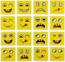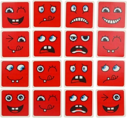 - 16 cubes en bois en 4 couleurs, 64 cartes d’expressions