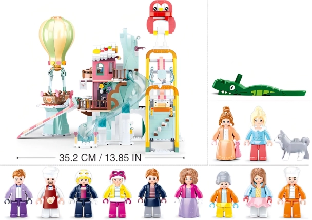 Grâce à la compatibilité avec les ensembles de construction populaires, vous élargissez facilement le monde de l’imagination avec d’autres sets. Les éléments interactifs, y compris le ballon à air chaud et la télécabine, inspirent une construction créative et des scénarios de jeu de rôle.