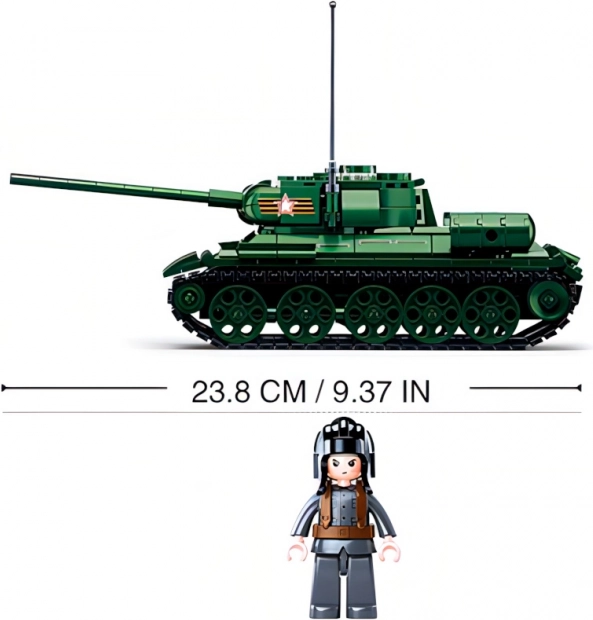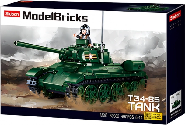Le set Sluban Model Bricks propose une maquette réaliste du char T‑34/85, icône de la Seconde Guerre mondiale. À l’intérieur, vous trouverez une notice claire et des pièces de qualité en ABS sûr, qui s’assemblent solidement et sont entièrement compatibles avec les autres grandes marques.