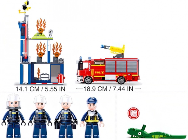 Camion de pompiers avec canon, robot mobile, 3 figurines, notice