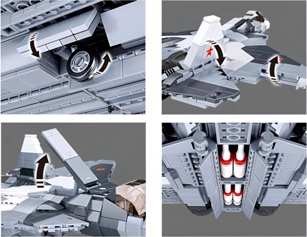 Profitez d’une construction détaillée du chasseur SU-57 avec des formes réalistes et des possibilités de reconstructions grâce au concept 2 en 1. La boîte Sluban Model Bricks garantit une grande qualité de fabrication, des notices claires et une excellente compatibilité avec d’autres sets populaires, afin d’étendre facilement votre collection.