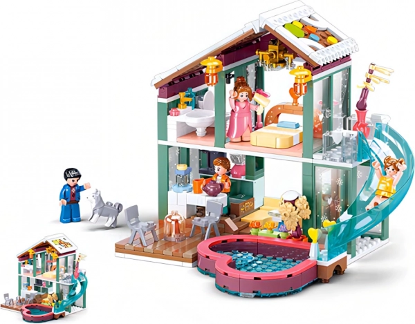 - Détails réalistes intérieurs et extérieurs – chambre, salon, terrasse, toboggan, bain à remous