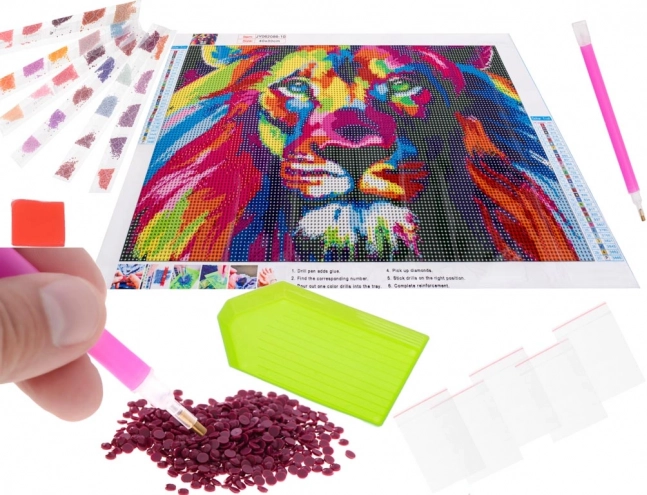 La mosaïque diamant 5D au motif de lion arc‑en‑ciel est un choix idéal pour des moments de détente et pour développer la motricité fine. Le processus ne requiert pas de compétences particulières – suivez le code couleur et appliquez simplement les strass sur la toile autocollante pour voir l’image se transformer en une mosaïque scintillante.
