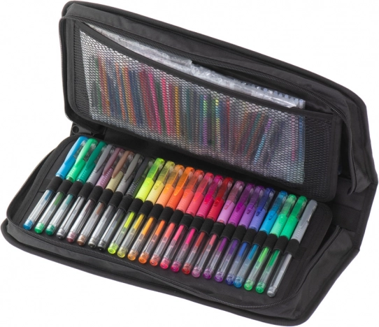 Le grand coffret de stylos gel offre d’infinies possibilités créatives. Grâce à des couleurs vives et stables, vos notes et illustrations seront toujours nettes et éclatantes. La trousse textile zippée garde tout bien organisé à la maison, à l’école comme en voyage.