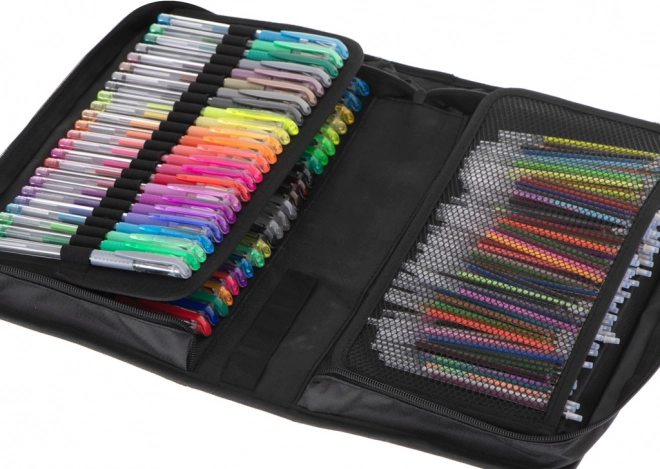 La trousse textile zippée avec élastiques et poches en maille maintient les 120 stylos en toute sécurité et bien organisés au même endroit – idéale à la maison comme en déplacement.