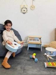 Découvrez les premiers pas musicaux avec la guitare acoustique pour enfants SMALL FOOT Groovy Beats. Légère, en bois et au format adapté aux enfants, elle possède des cordes colorées selon la gamme pour un apprentissage facile, un design moderne bleu–bois naturel et le coffret comprend des partitions et 2 médiators. Un excellent choix pour développer la motricité fine, la sensibilité musicale et le sens du rythme.