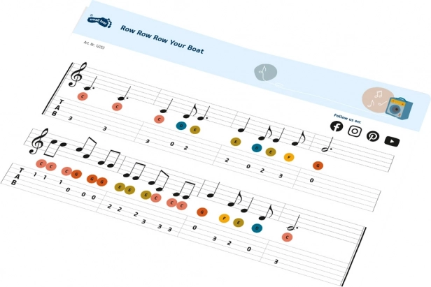 Le coffret inclut des partitions simples et deux médiators de tailles différentes pour que les enfants puissent commencer à jouer dès le déballage.