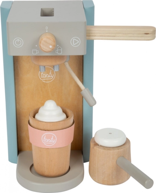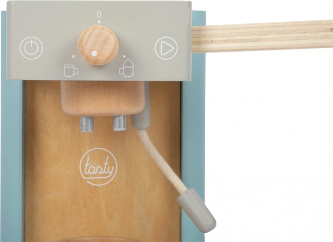 Les enfants profitent d’une préparation authentique du café : ils insèrent une capsule, abaissent le levier et décorent la boisson avec une mousse magnétique. Idéal pour jouer au café.