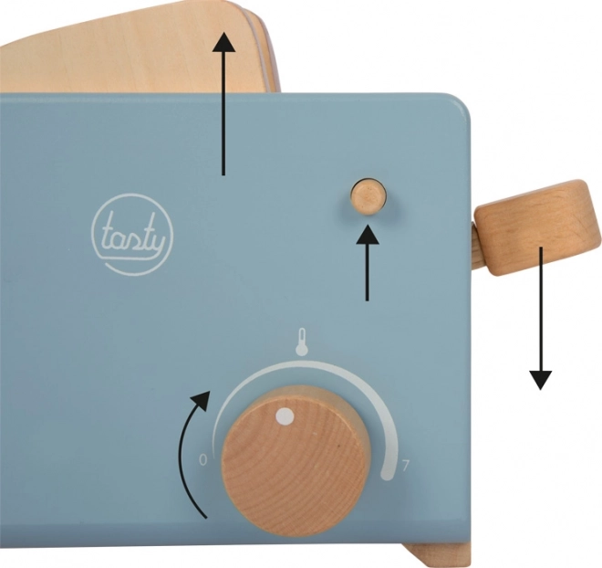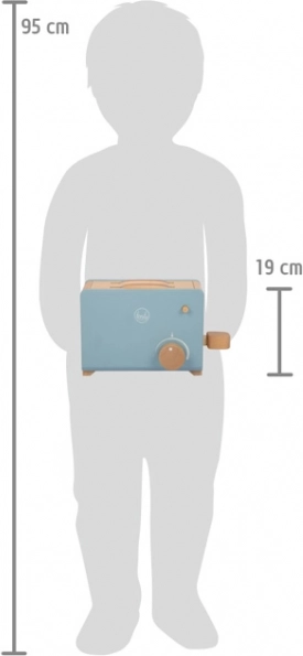 Ce set en bois réaliste Small foot Tasty transforme n’importe quelle dînette en lieu préféré pour les rituels du petit-déjeuner. Les enfants insèrent les tranches de toast, appuient sur le levier et, grâce à la fonction à ressort, le toast « saute » une fois prêt. Le bouton rotatif cliquable imite fidèlement le réglage du degré de grill, ce qui renforce l’authenticité du jeu.