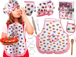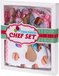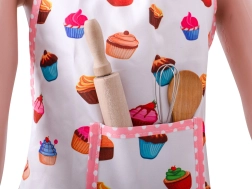 En plus des vêtements, il contient également des ustensiles en bois, y compris un rouleau à pâtisserie, une cuillère, plusieurs formes pour découper la pâte et un fouet. Tous les ustensiles sont fabriqués à partir de matériaux durables, idéaux pour des heures de jeu de simulation de cuisine et de pâtisserie.