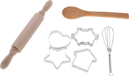 Comprend un rouleau à pâtisserie, une cuillère, des emporte-pièces et un fouet. Fabriqués avec des matériaux de qualité, durables et sûrs pour les enfants.