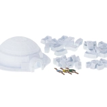 Ensemble de jeu interactif avec un igloo blanc fait de blocs plastiques interconnectés, permettant des assemblages imaginatifs et un jeu créatif.