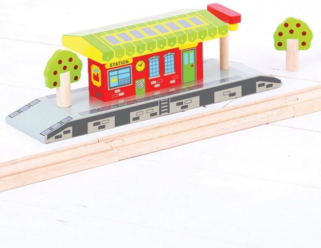 La gare est fabriquée en bois de qualité, issu de sources responsables et respecte les normes européennes de sécurité actuelles. Des couleurs claires et des lignes épurées créent une ambiance accueillante pour les petits voyageurs.