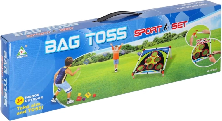 3 sachets de lancer, 3 balles en plastique, châssis (cadre) pour la cible, cible textile avec ouvertures