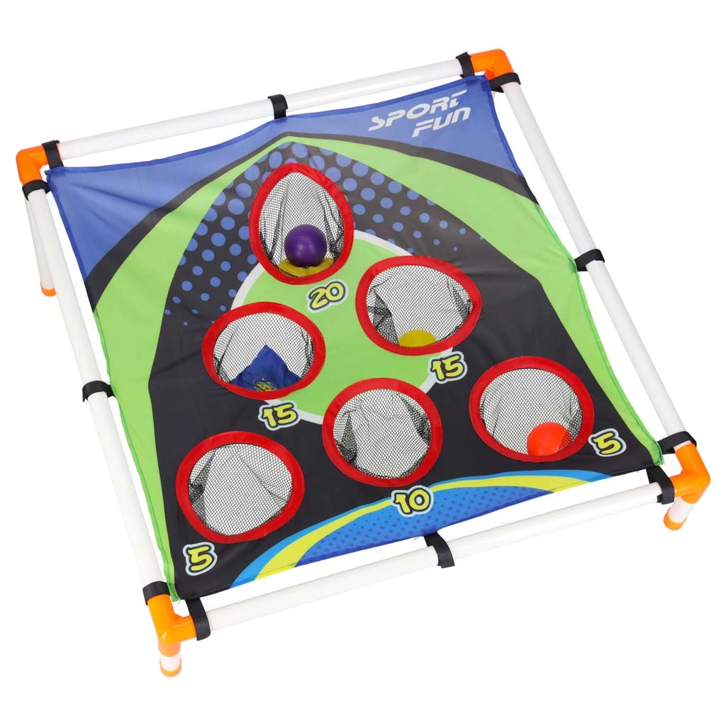 Jeu de lancer amusant pour enfants développant la coordination œil-main, la précision et les réflexes rapides. Cadre léger avec cible inclinée et trous numérotés offrant différents défis de points. Convient au jardin comme en intérieur, montage simple et transport facile. Fournie avec des sachets de lancer et des balles en plastique.