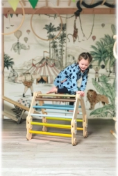 Cette structure d'escalade est fabriquée en un mélange de contreplaqué de qualité et de bois massif, assurant sa durabilité et stabilité. Grâce à sa capacité à être dépliée en différentes formes, elle offre de larges possibilités de jeu et est également exceptionnellement compacte. Idéale pour le développement de l'équilibre et des compétences motrices des enfants, elle peut également être utilisée en thérapie par le mouvement.