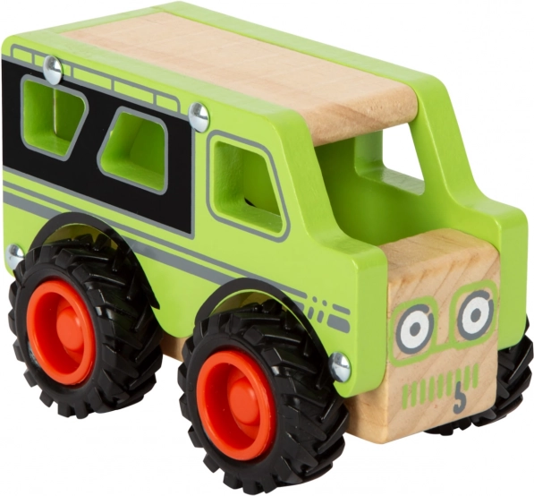Voiture en bois robuste et durable fabriquée à partir de bois massif et obtenu de manière durable. La voiture a une cabine spacieuse et un fonctionnement silencieux grâce aux roues en caoutchouc. Idéale pour les petits aventuriers !