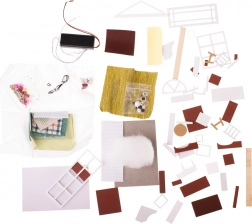 Le set contient tout le nécessaire pour la construction du salon et son aménagement, y compris de la colle et des instructions illustrées détaillées. L’éclairage LED, inclus dans l’emballage, fonctionne avec des piles (2x AAA 1,5 V et 3x LR54 1,5 V – piles non incluses) et sublime magnifiquement l’ambiance générale.