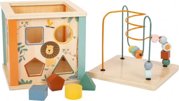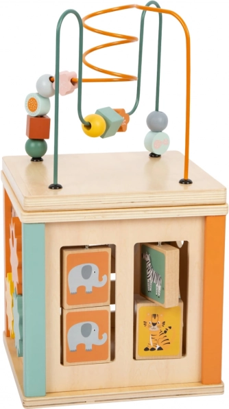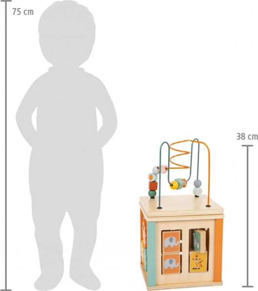 Plongez dans diverses activités avec le cube d’activité Safari en bois pour enfants. Grâce à une combinaison colorée de labyrinthes coulissants et à perles, de blocs rotatifs, de rouages et d’un jeu d’encastrement, votre enfant profitera d’heures de jeu tout en développant ses compétences. Orné de motifs d’animaux du safari, ce cube est un excellent jouet pour tous les enfants curieux.