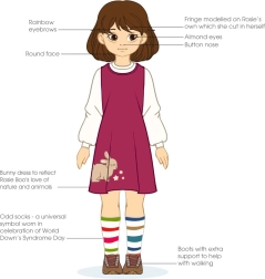 La robe à motif animalier et les deux chaussettes différentes symbolisent la Journée mondiale de la trisomie 21 et apportent aux enfants joie et apprentissage.