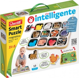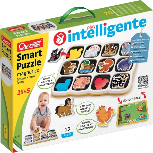 Le Quercetti Puzzle magnétique Ferme est un jouet formidable pour les tout-petits. Sur un côté du tableau, les enfants peuvent insérer des aimants dans les ouvertures prévues, ce qui les aide à développer la reconnaissance des formes et des couleurs. Les pièces illustrées se fixent facilement grâce aux aimants et peuvent être rangées de manière pratique pour de futurs moments de jeu.