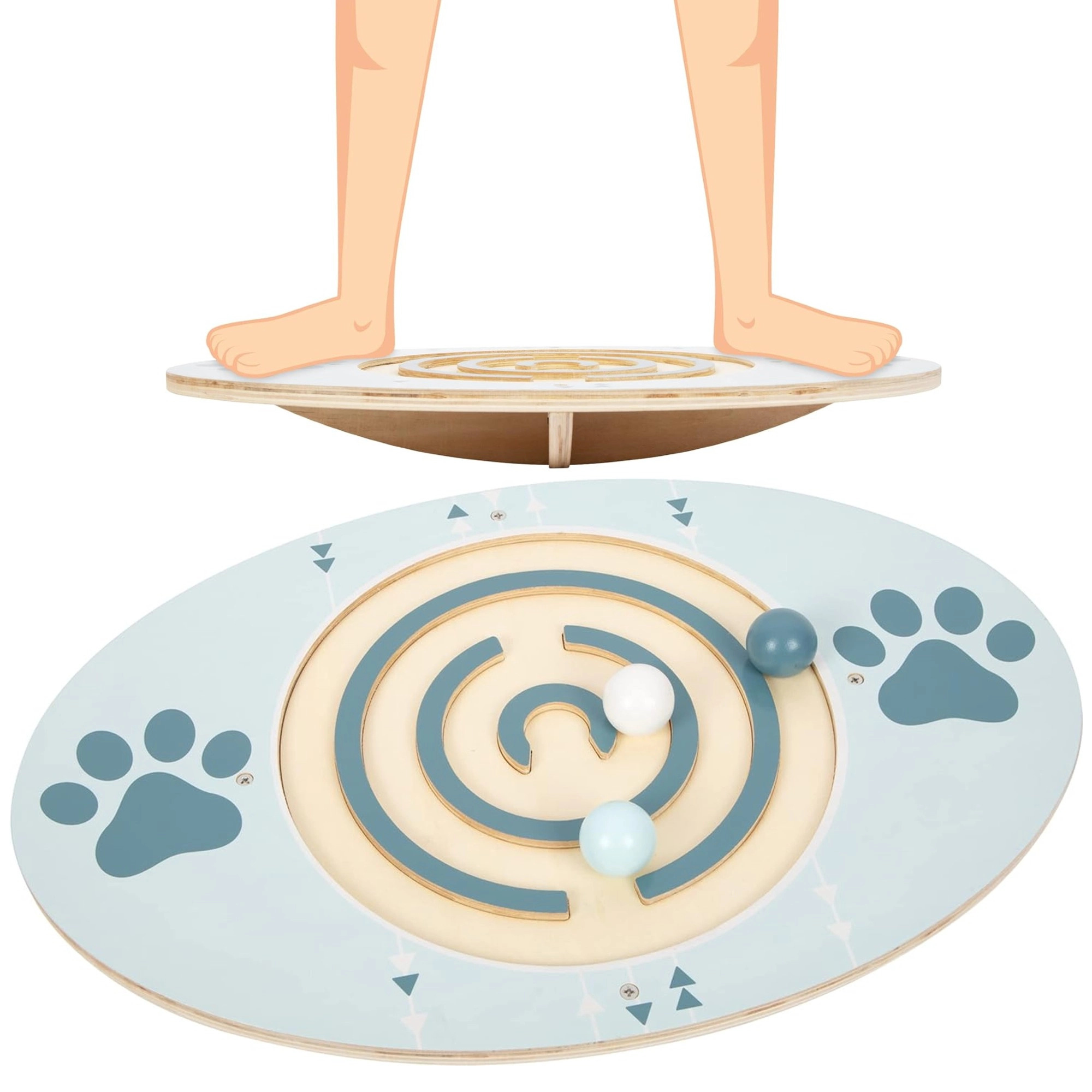 La planche d’équilibre en bois Small Foot allie jeu et mouvement. La surface ovale avec piste en spirale et billes mobiles met votre équilibre à l’épreuve – en inclinant la planche, vous faites avancer les billes dans le labyrinthe tout en entraînant la coordination œil–main, la réactivité et la stabilité.