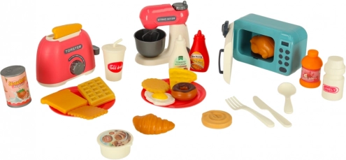 Set de cuisine pour enfants avec micro-ondes, grille-pain et mixeur pour un jeu créatif et sécurisé.