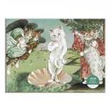 Profitez d’une rencontre originale entre art visuel et humour. Le puzzle GALISON propose l’iconique Naissance de Vénus en parodie féline par l’artiste primée Susan Herbert. Grâce au papier de qualité, aux bords nets et aux pièces parfaitement ajustées, l’assemblage est fluide et agréable du premier au dernier élément.