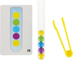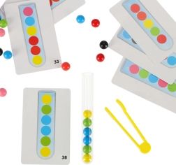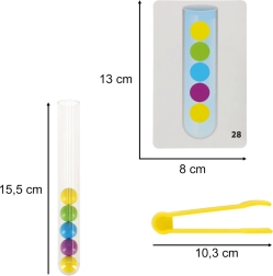 Découvrez une façon amusante et interactive de soutenir les compétences de votre enfant grâce à cet ensemble éducatif complet. Le jeu se concentre sur le tri des boules dans les tubes corrects à l'aide des mains ou des pinces fournies.