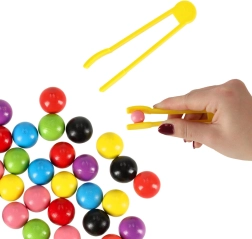 L'ensemble contient 40 boules colorées, qui soutiennent non seulement le tri, mais aussi aident à l'apprentissage du comptage et de la reconnaissance des couleurs. Chaque boule a un diamètre de 5,5 cm, ce qui est une taille idéale pour les enfants pour les attraper facilement et les manipuler en toute sécurité.