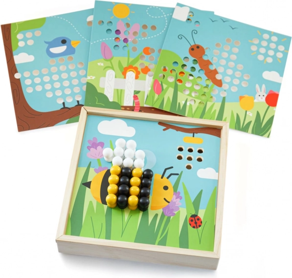 - 4 images, 96 chevilles (8 couleurs), boîte avec couvercle