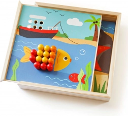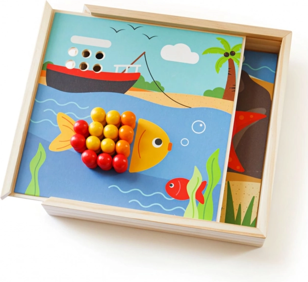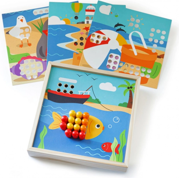 Découvrez une mosaïque amusante sur le thème de la plage qui stimule l’imagination et les compétences des enfants. Elle comprend 4 images et 96 chevilles en 8 couleurs que les enfants placent sur le couvercle de la boîte pratique. Le jeu favorise la reconnaissance des couleurs, la motricité fine, la concentration et la pensée logique. Fabriqué en bois de qualité, issu de sources responsables – agréable au toucher et idéal pour les déplacements.