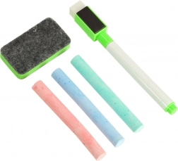 - craies de couleur, éponge, marqueur effaçable à sec avec effaceur en feutrine, guide avec modèles