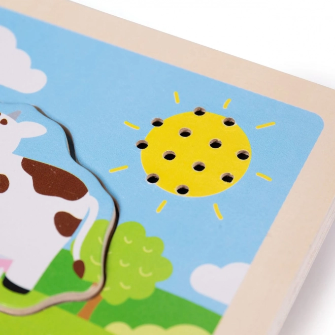 Le puzzle encastrable sonore en bois Ferme est conçu pour divertir tout en éduquant. Les pièces en bois ont une taille et des formes adaptées aux petites mains, agréables au toucher et aident à stimuler le sens du toucher. Les couleurs vives et les adorables visages d’animaux attirent facilement l’attention des enfants. Le produit est fabriqué en bois de qualité, issu de sources responsables et traité avec des peintures non toxiques.